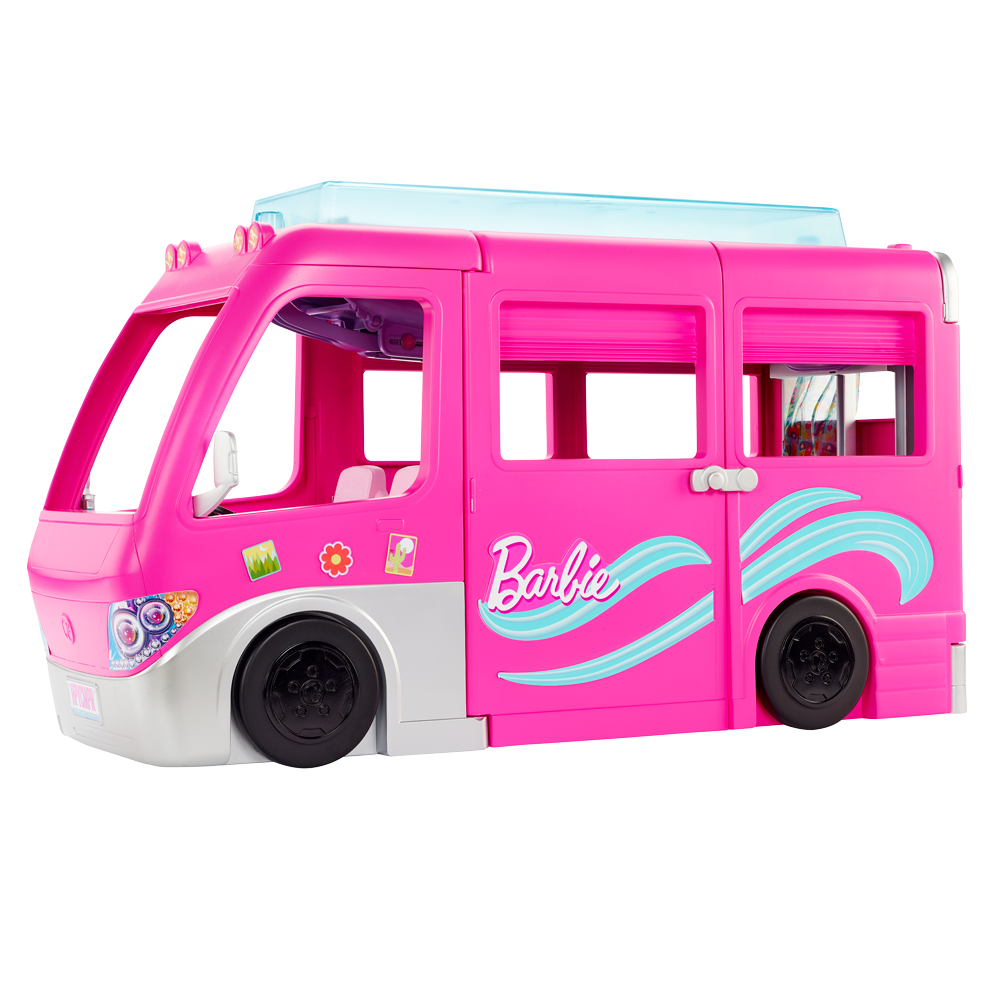 Ξεκίνα για το απόλυτο κάμπινγκ με το Barbie τροχόσπιτο Με επτά χώρους παιχνιδιού, μια επική τσουλήθρα και πολλά αξεσουάρ αφήγησης. Εμπνέει ατελείωτες υπαίθριες περιπέτειες. Με τροχούς και διθέσια καμπίνα, τα παιδιά μπορούν να φορτώσουν το τροχόσπιτο και να οδηγηθούν στον προορισμό των ονείρων τους!